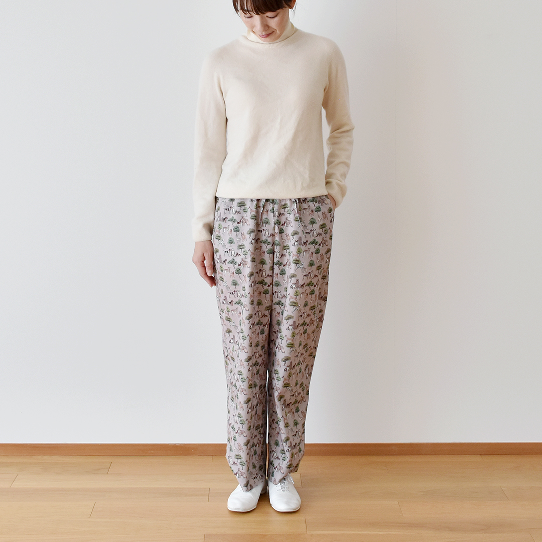 C(モーヴピンク):『CHECK&STRIPEのおとな服 ソーイング・レメディー』(文化出版局) フローラルパンツ