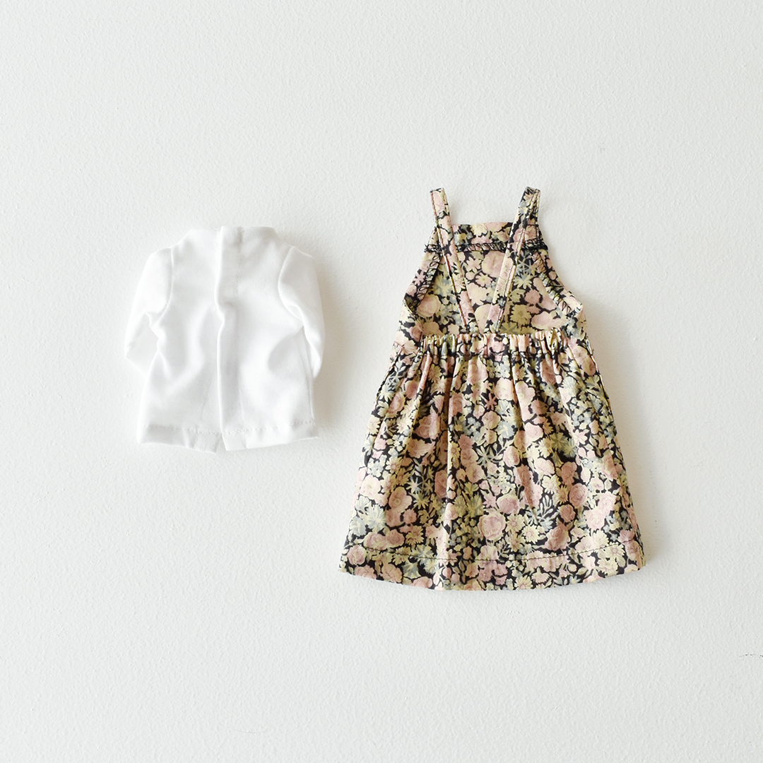 後ろギャザーのエプロンワンピースとカットソーのセット