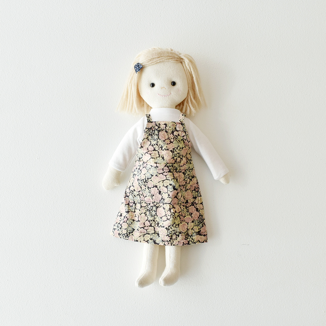 『CHECK&STRIPE SEW HAPPY』(世界文化社)の後ろギャザーのエプロンワンピースとおそろいのお人形のお着替えです。