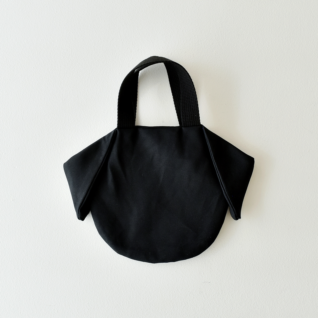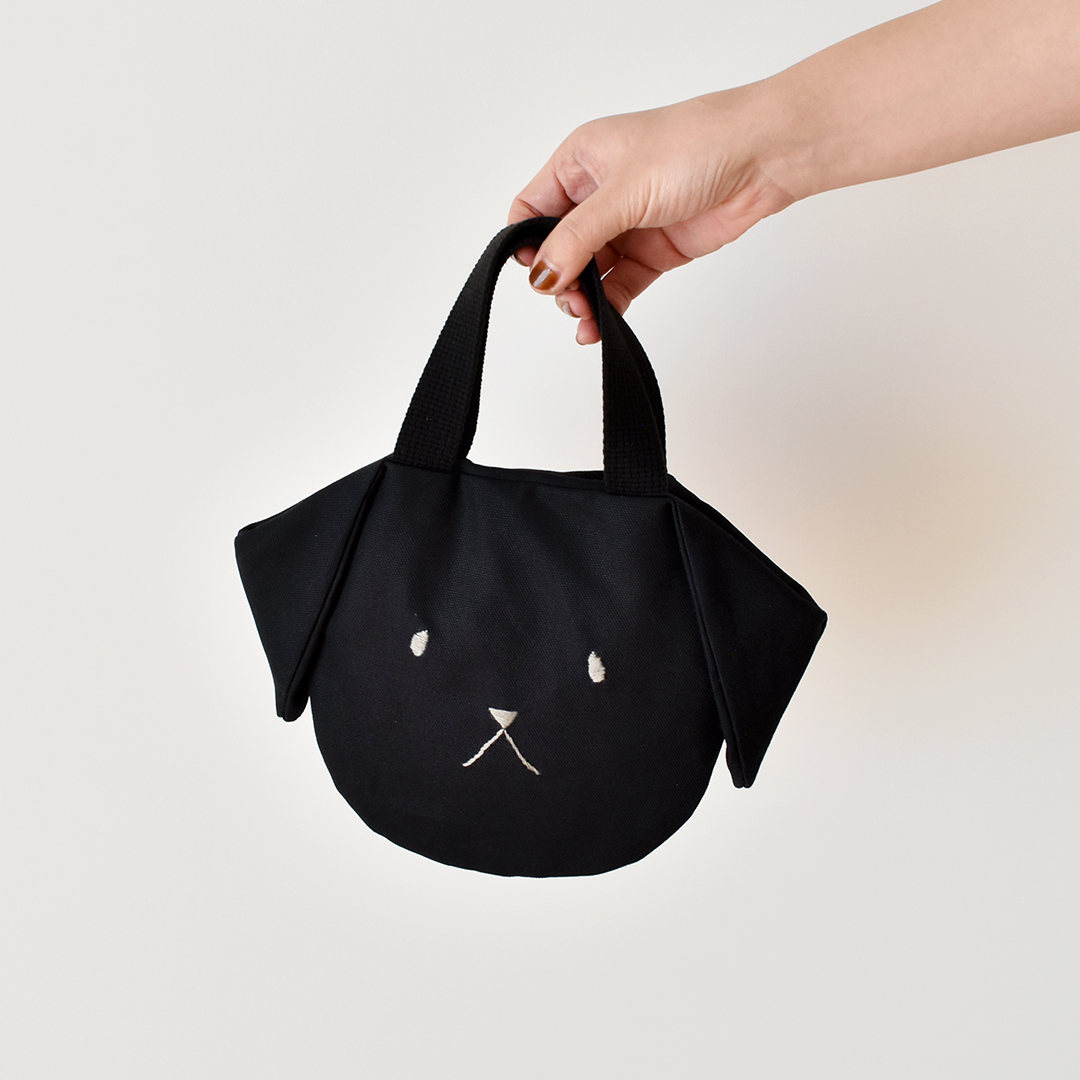 折りまげた部分が垂れた耳になる小さなバッグです。小さなお子さまや犬のお散歩のおともにも。