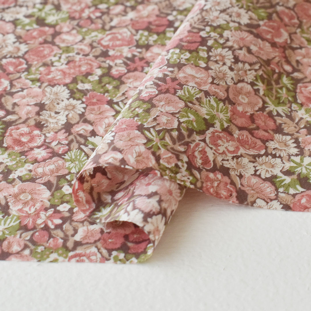 リバティ社のアーカイブにあるデザインをベースにした、密集した花々を描いた代表的リバティ柄で、1974年にタナローンコレクションに仲間入りして以来、継続的な人気があります。今のところ起源は確認されていません。