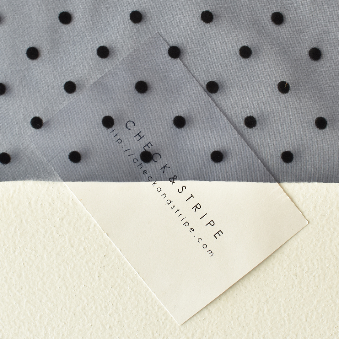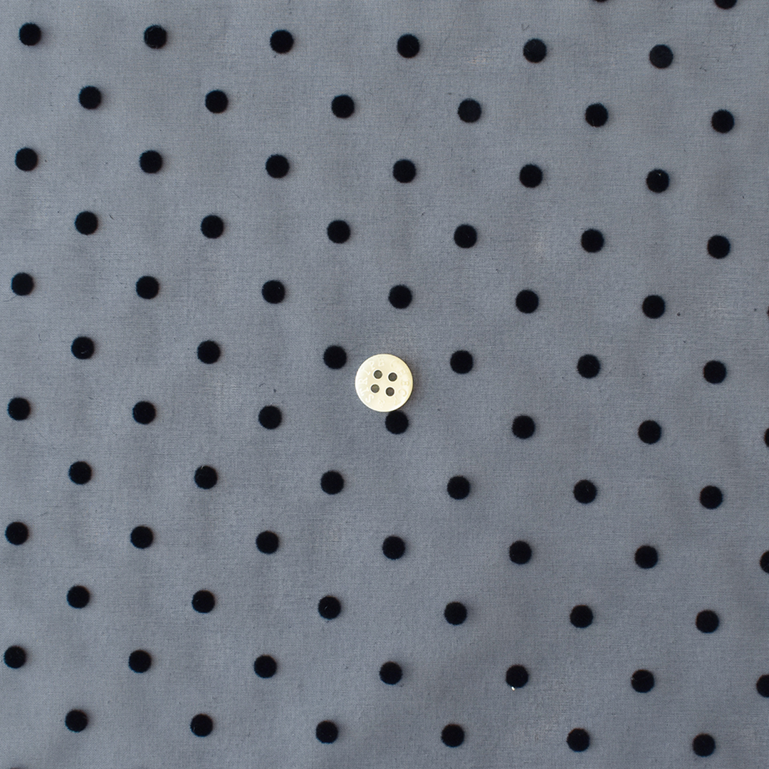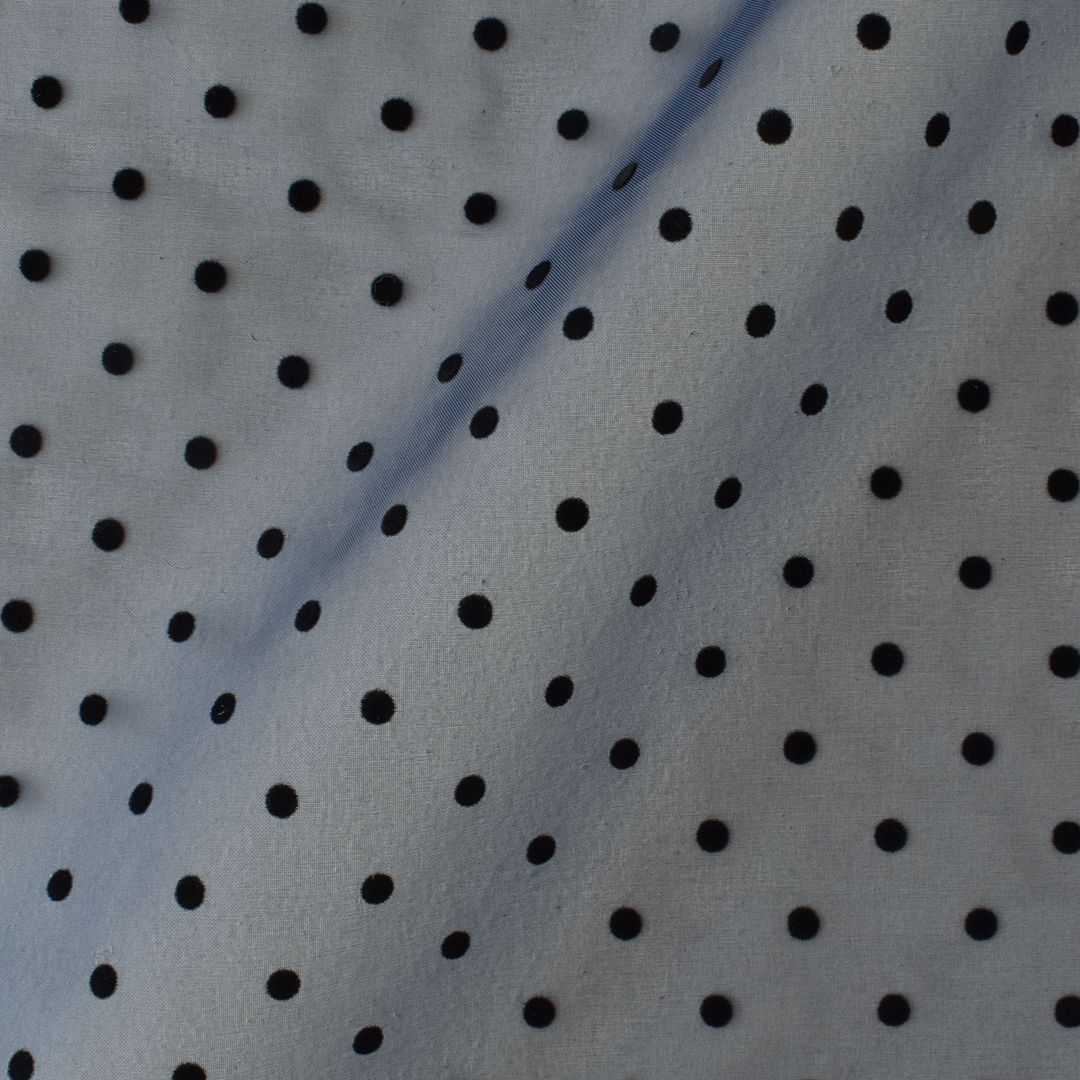 ネイビーのオーガンジーにブラックのドット柄がプリントされています。