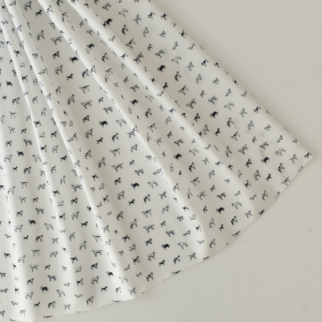 2021年秋冬のシティ・コレクションにて発表されたデザインです。洗練されたシティ・コレクションに、ひねりの効いたカンバセーショナルデザインを加えました。詳細に描かれた犬のイラストが間隔をあけてレイアウトされています。