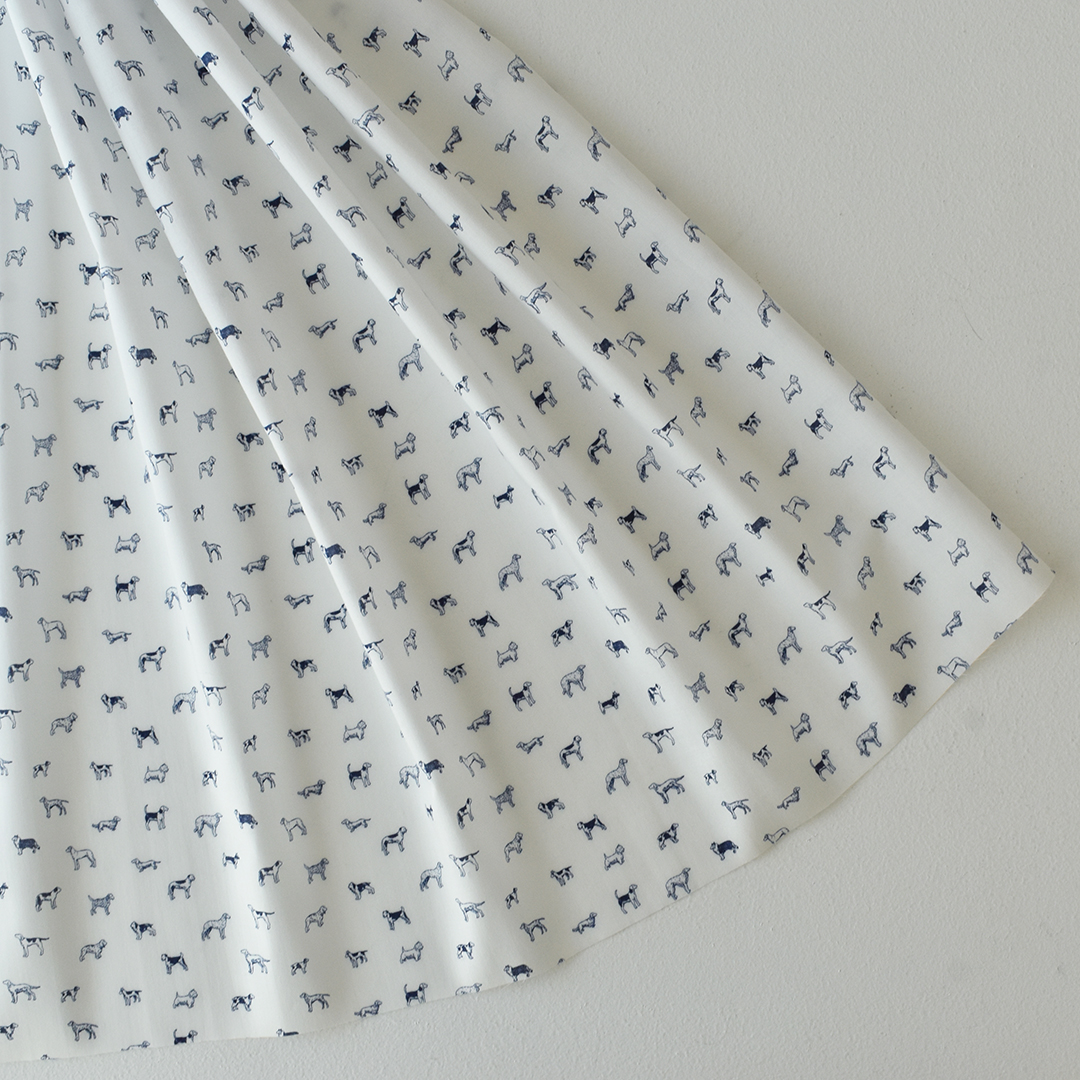 2021年秋冬のシティ・コレクションにて発表されたデザインです。洗練されたシティ・コレクションに、ひねりの効いたカンバセーショナルデザインを加えました。詳細に描かれた犬のイラストが間隔をあけてレイアウトされています。