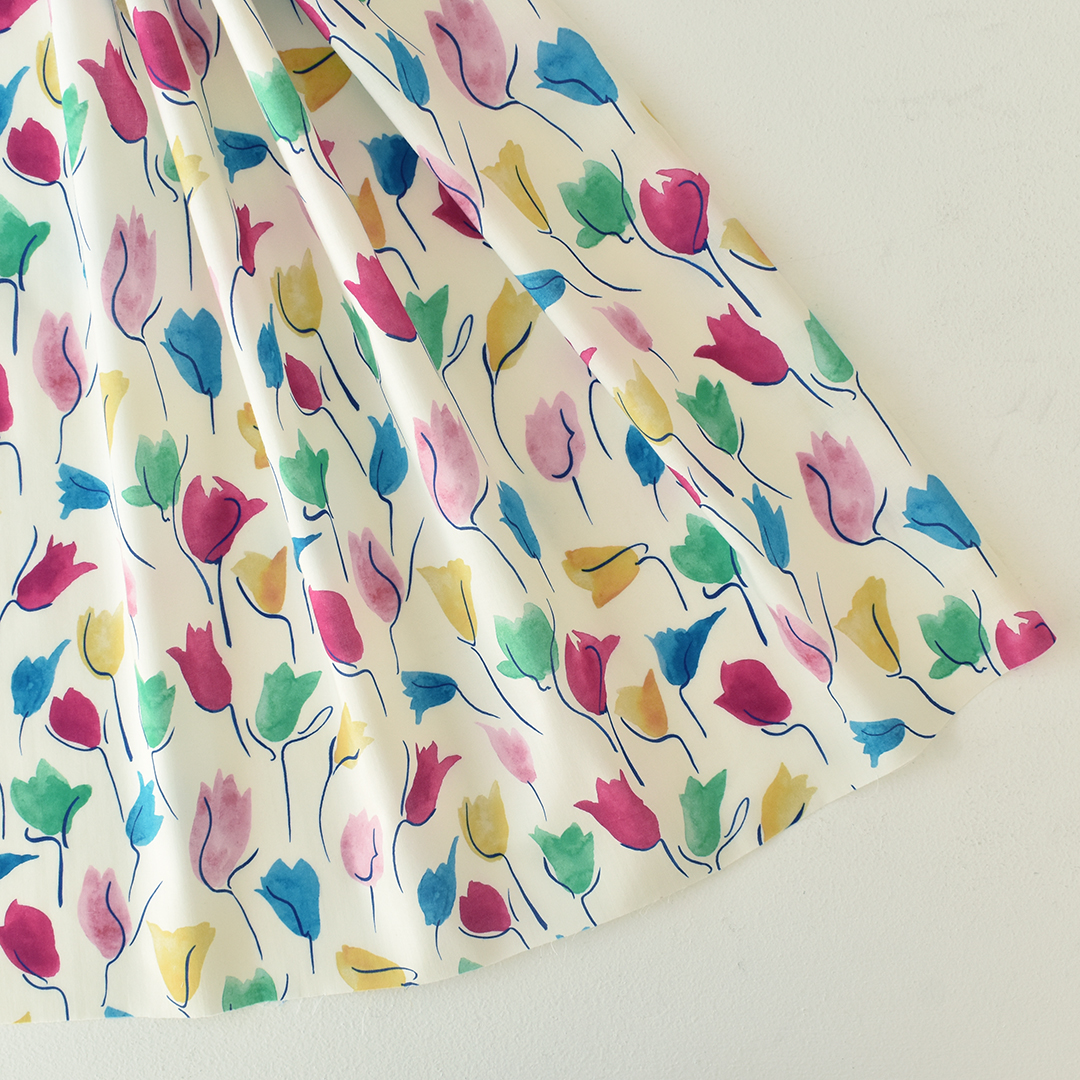 ミドルスケールの抽象的な花のデザイン「チューリップ・シャドー」は、アーカイブ作品から着想を得てスタジオにて水彩絵の具でペイントしなおされました。
