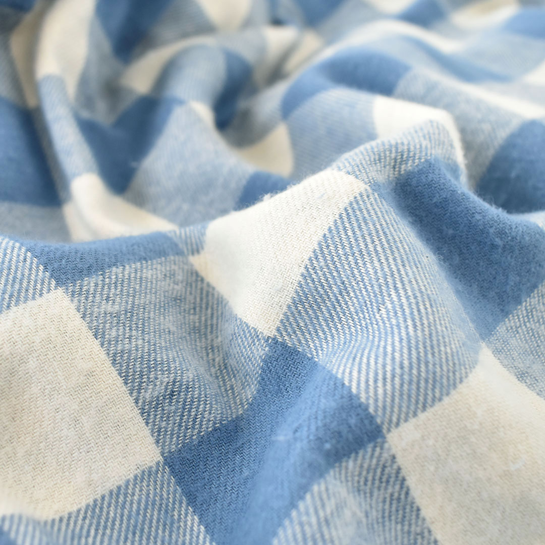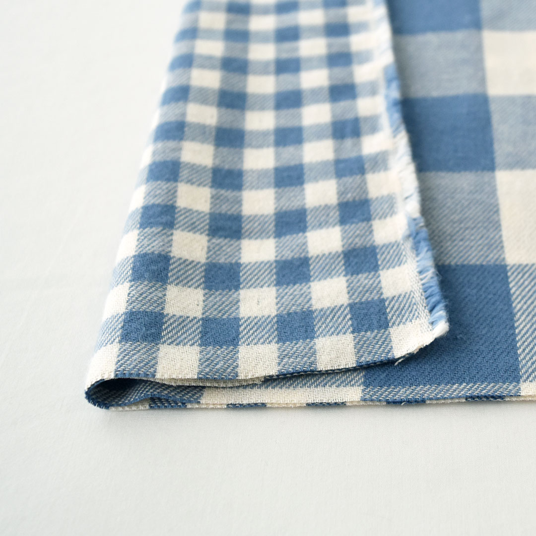 大きいチェックと小さいチェックの組み合わせで、2枚の生地を接結しているので、リバーシブルでお使いいただけます。