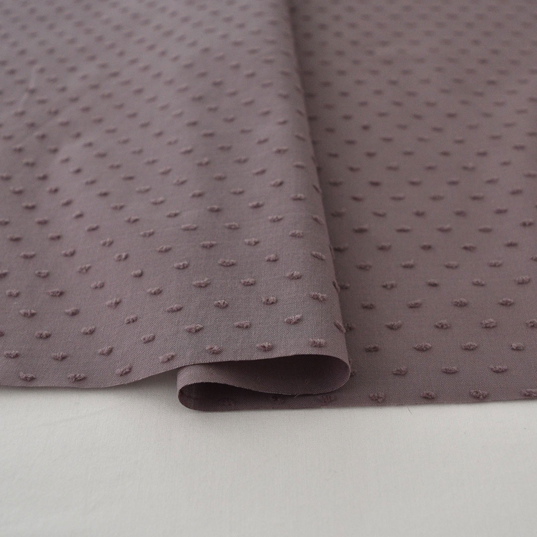 透け感のある布にカットドビーで表現された水玉がかわいい布です。