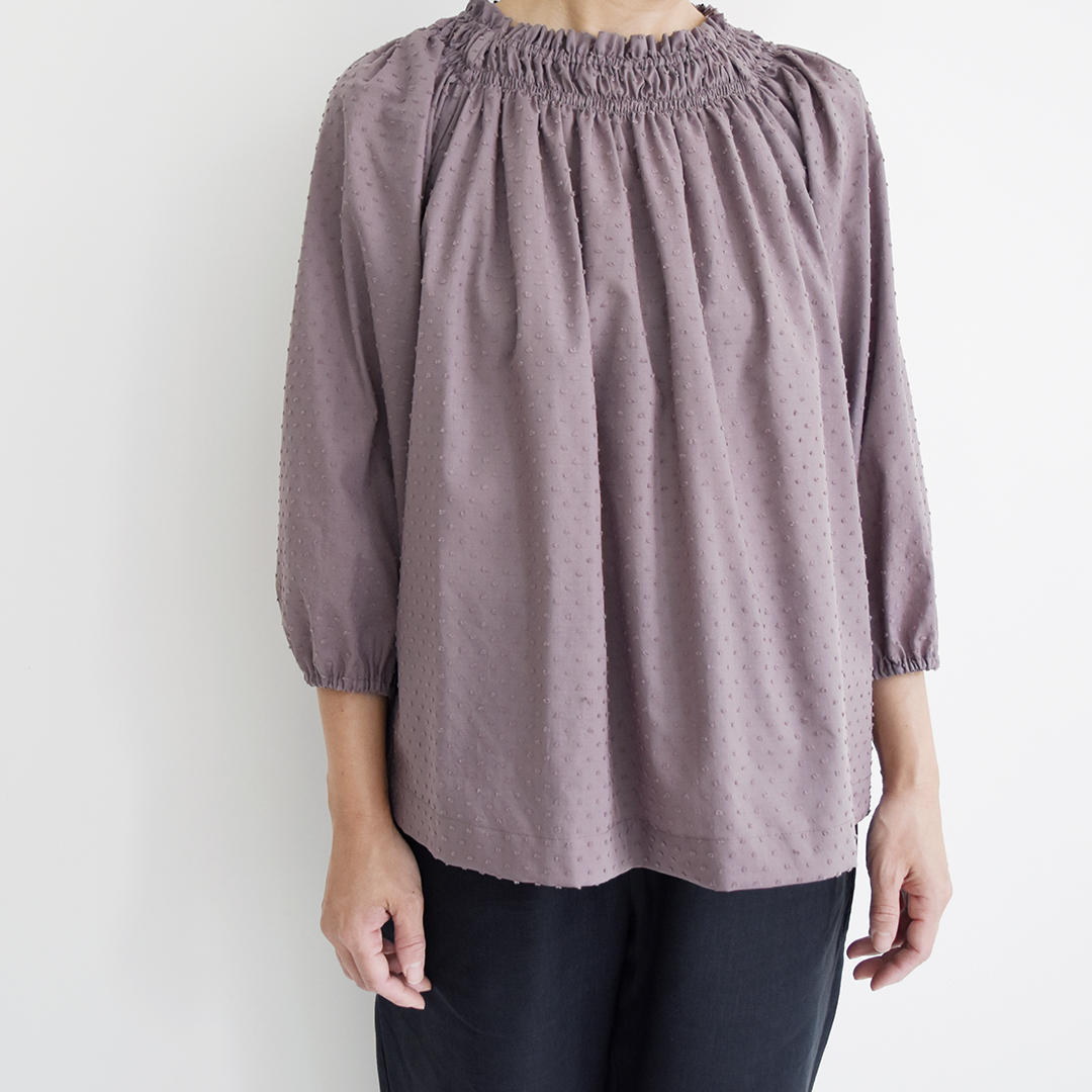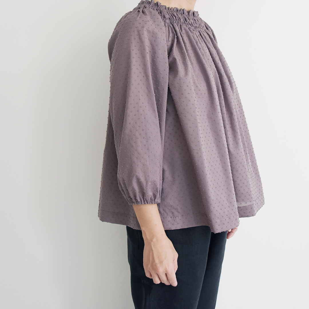 ノースリーブやギャザーの入ったブラウスなどに。