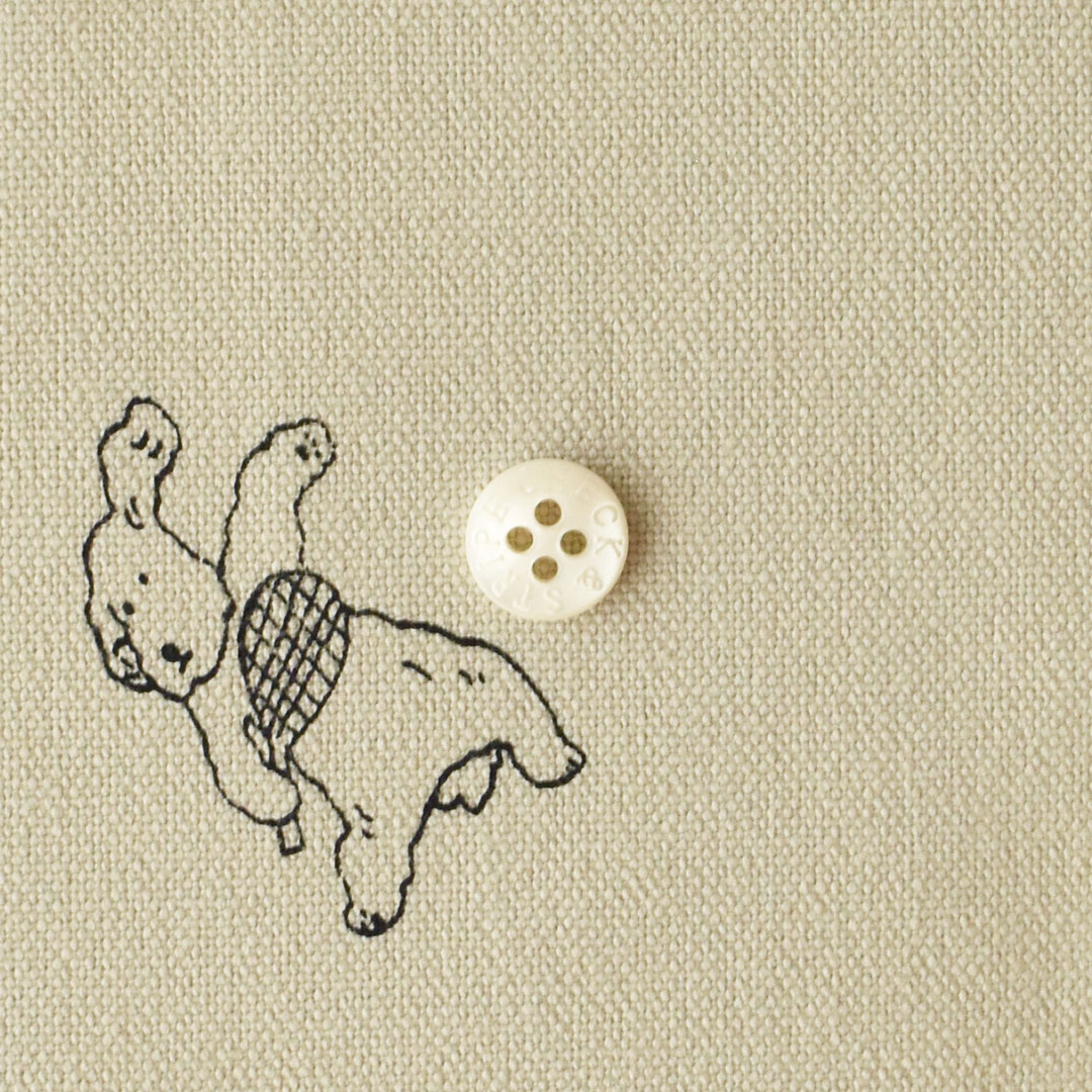 コットンキャンバスの布に、もこもこの犬のイラストをプリントしました。