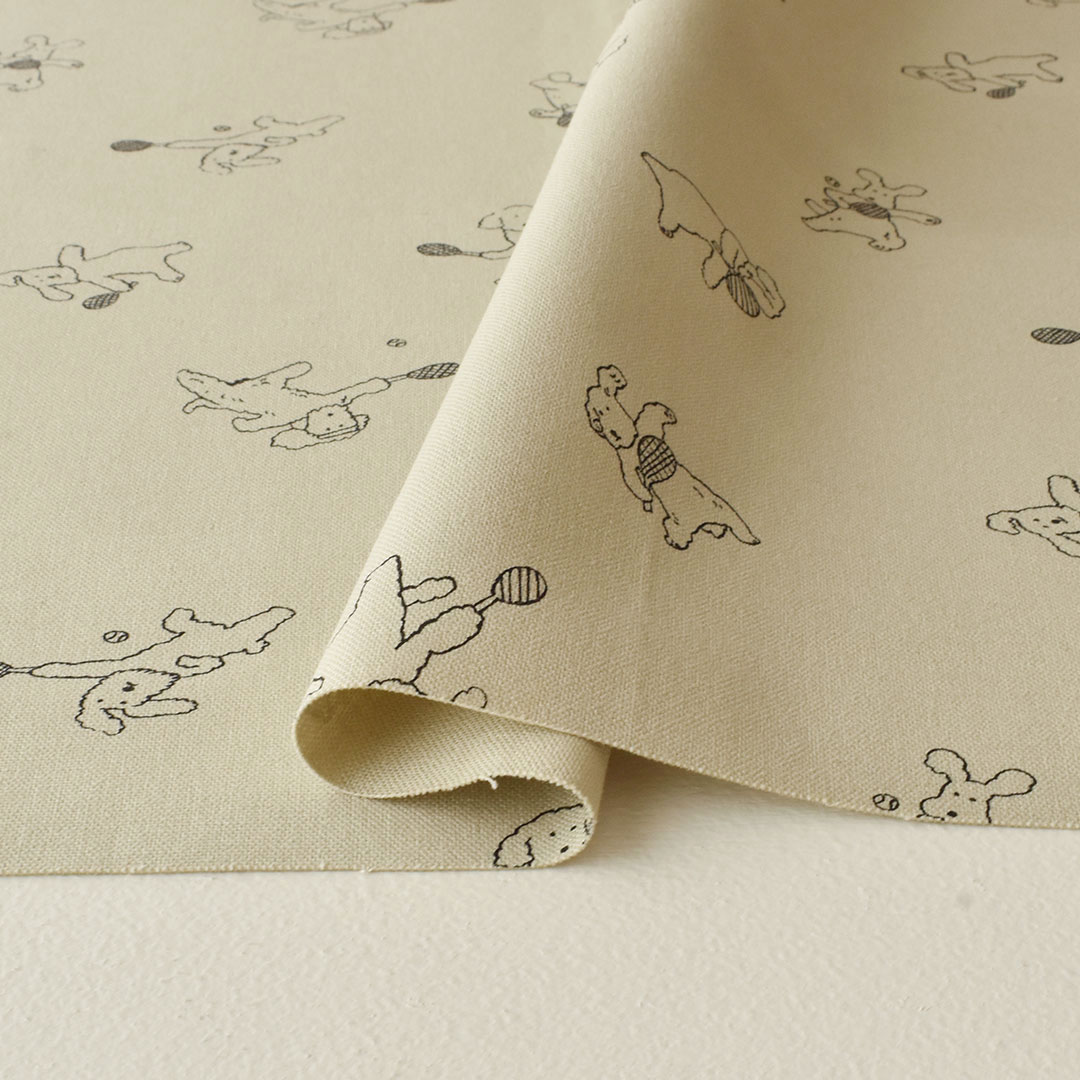 コットンキャンバス「テニスを始めたモコモコの犬」(レシピ付き)