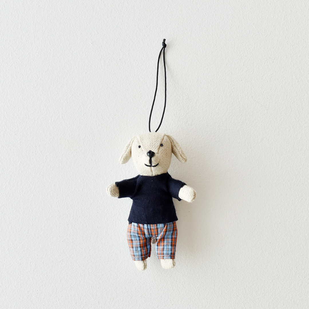 かばんなどに付けることができる、ピーナッツ色のピーナッツみたいなかわいい、いぬのマスコットです。