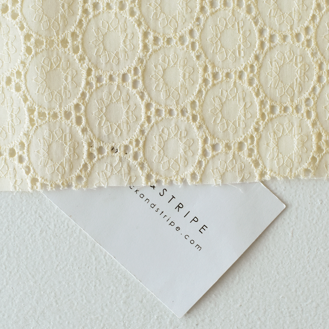 肌触りの良い綿60ローン生地に水玉模様の刺繍をしたコットンレースです。