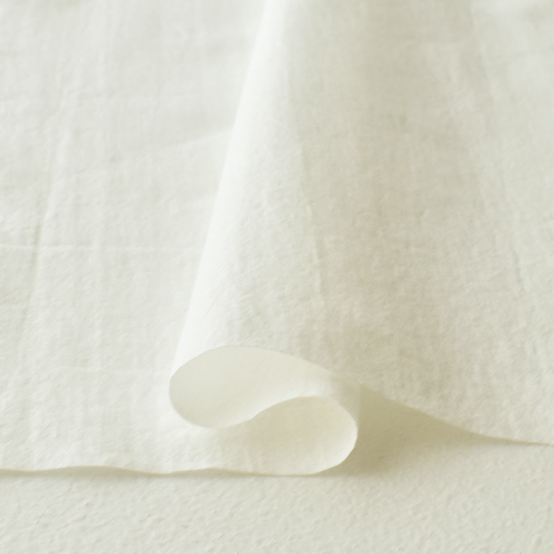 少ないロットで長時間かけて生地を揉みほぐす加工を施すことによって、ふっくらとした仕上がりになったコットンリネンです。