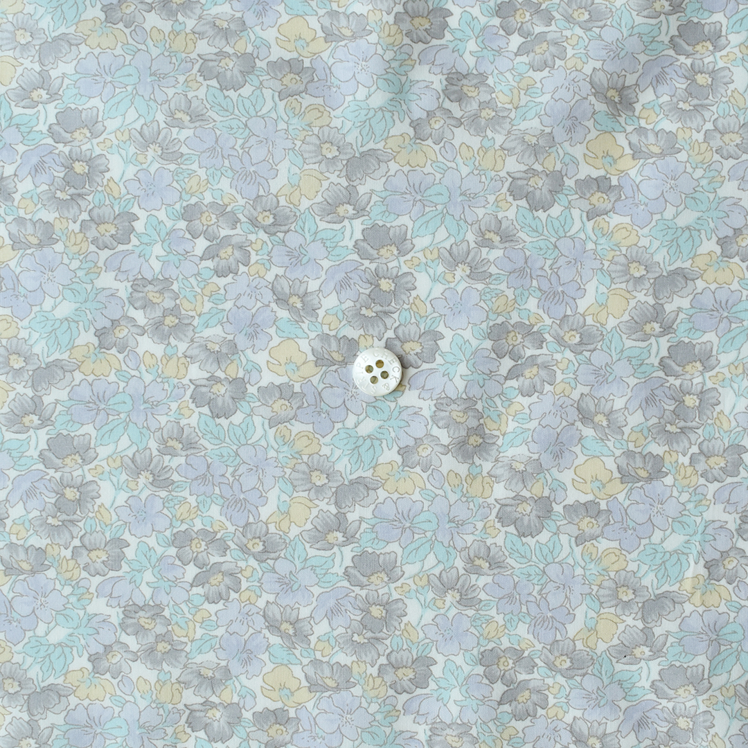 元々は1978年にリバティ社の為に作られ、1979年秋冬タナローンコレクションとしてプリントされました。葉の背景の中に様々な種類の花が密集して描かれた小さいボタニカルデザインです。 -