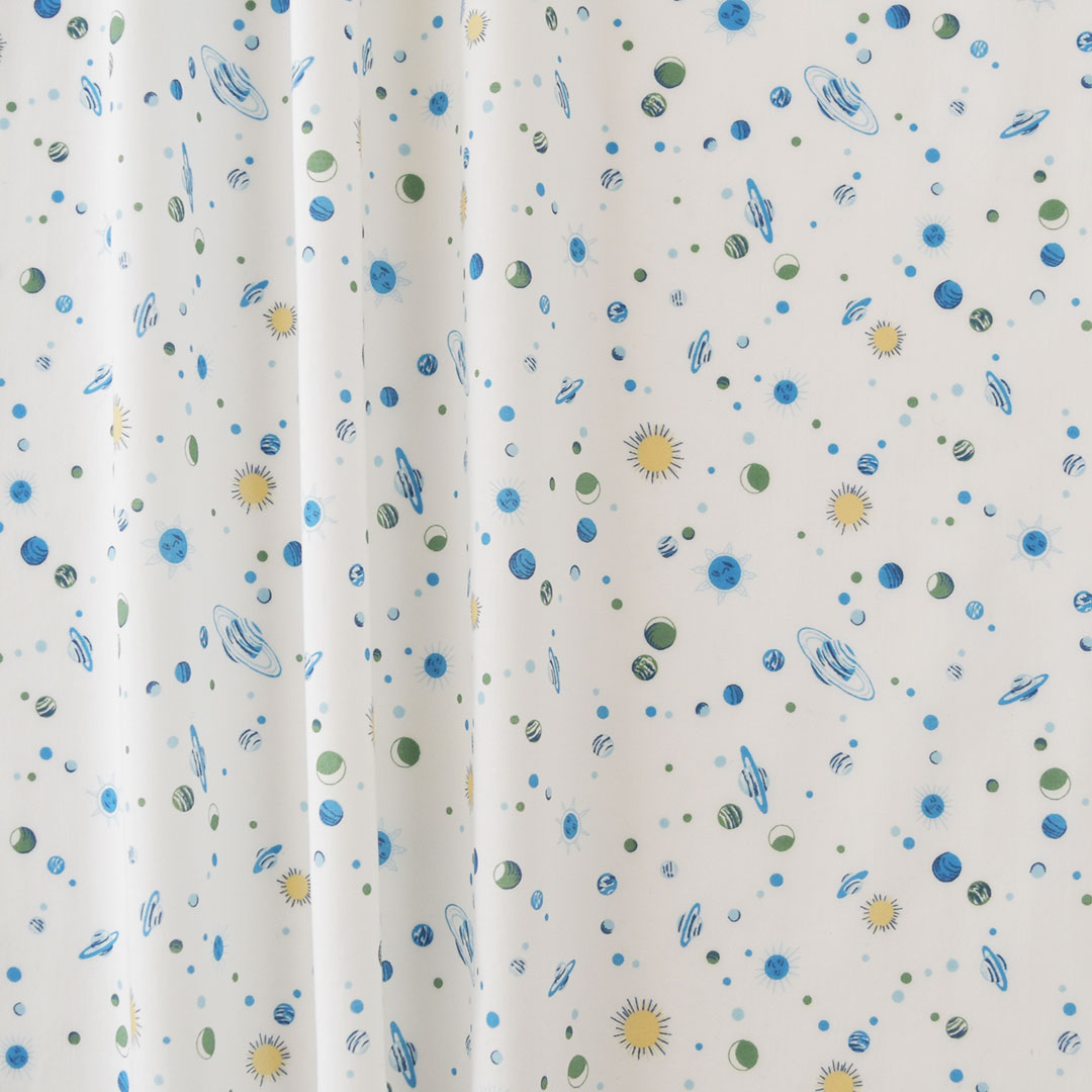 宇宙をテーマにしたキュートなカンバセーショナルプリントで、「オリオン」の対としてスモールスケールで描かれました。広大な宇宙空間に広がる太陽や月、惑星がまるで魔法の空に散りばめられた真珠のようで、私たちを銀河系発見の旅へと連れ出してくれます。