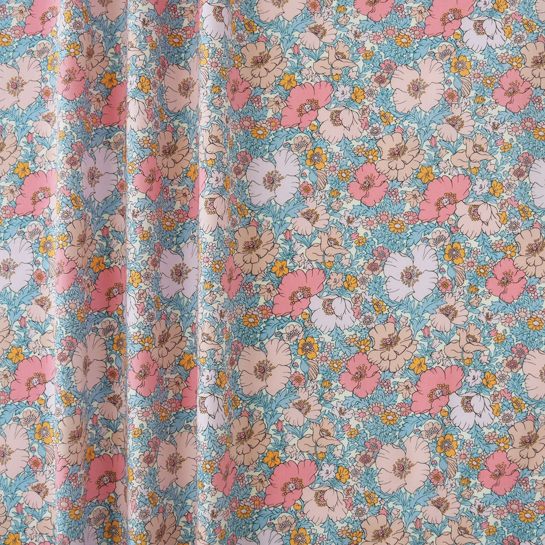 リバティが長年にわたり愛してきたポピーとデイジーへのオマージュを込めたこのデザインは、60年代のロックのレジェンド達が着用していたシャツを彷彿とさせるノスタルジックでクラシカルな花柄のムードを表現しています。アパレルブランドでも採用されている、可憐で落ち着きのある柄です。