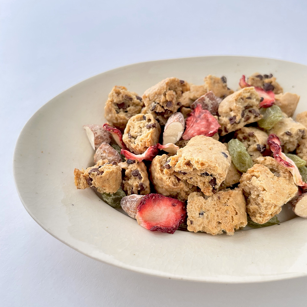 ・グラノーラの袋にたまった細かなものはクッキー生地のかけらですので一緒にお召し上がりください。