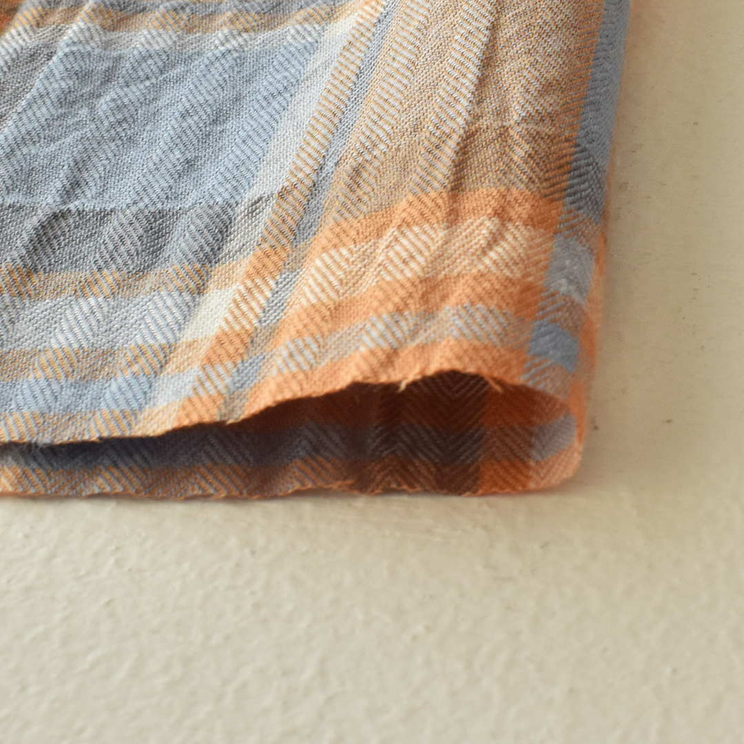 ヘリンボンのコットンチェック生地にワッシャー加工を施しました。