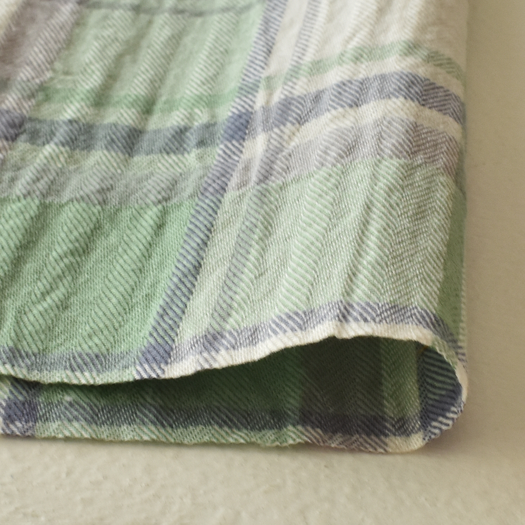 ヘリンボンのコットンチェック生地にワッシャー加工を施しました。