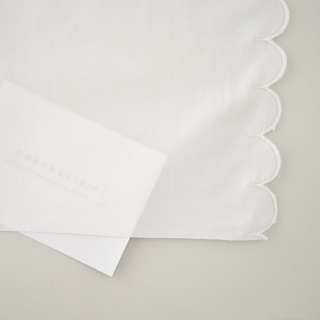 CHECK&STRIPE定番の布、「C&S海のブロード」の両端をスカラップレースにした布です。
