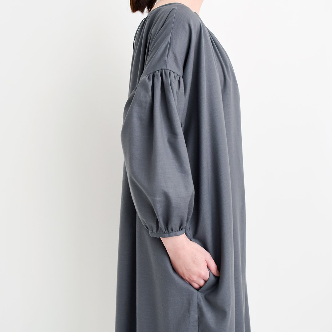 ダークグレー:『CHECK&STRIPEのおとな服 ソーイング・レメディー』(文化出版局) スタンダードギャザーワンピース