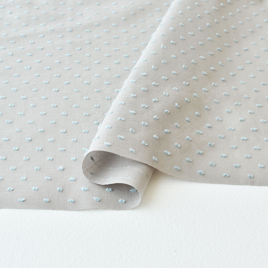 透け感のある布にカットドビーで表現された水玉がかわいい布です。
