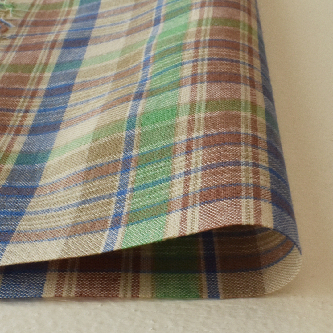 薄手のコットンリネンで、光にかざすとやや透け感があります。