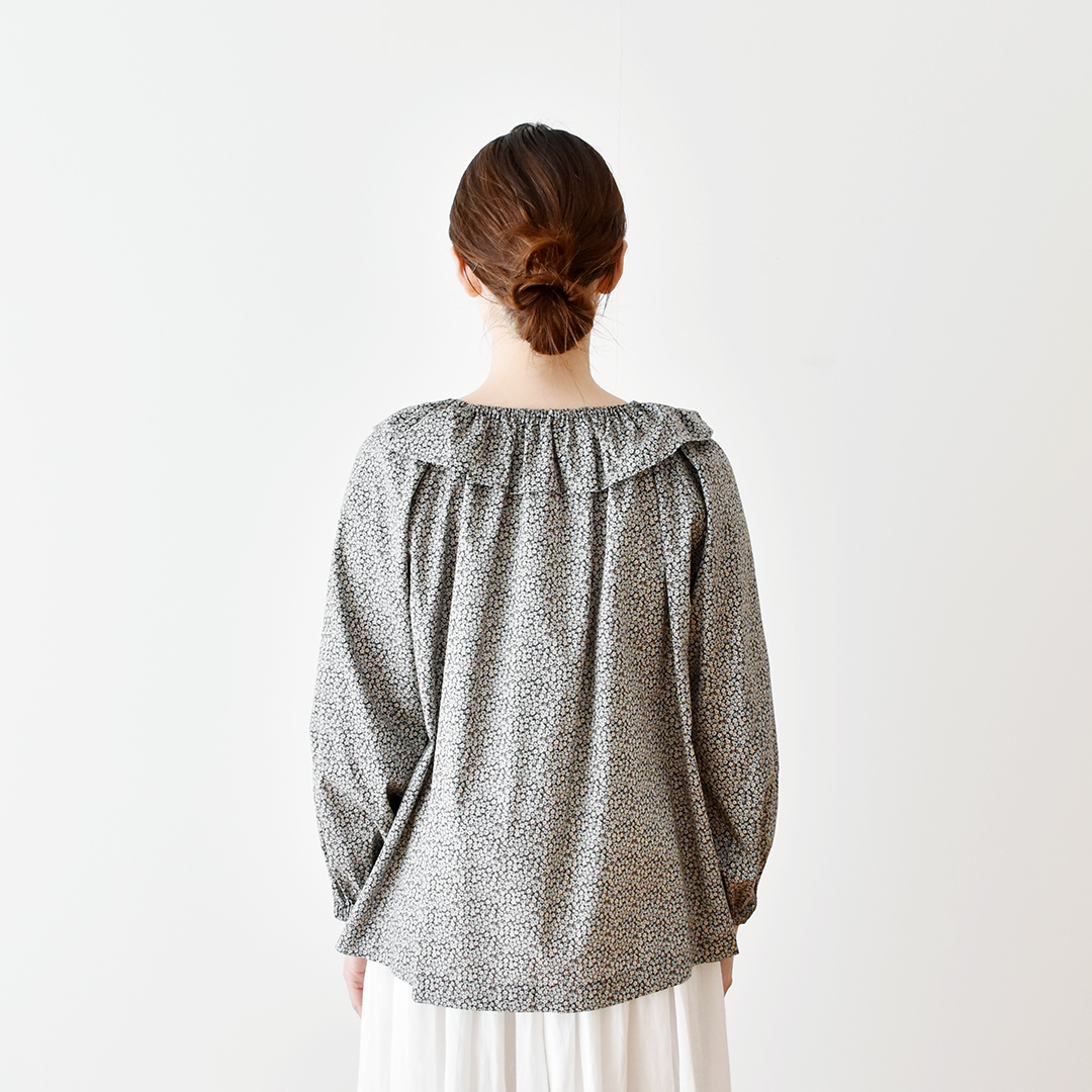 こちらの布をお買い上げのお客さまに、フリル衿のブラウスのレシピをおつけいたします。オンラインでは初めてご紹介するレシピです。(サンプル:◎J26C(フレンチ系)) ※用尺:108cm幅×2.5m