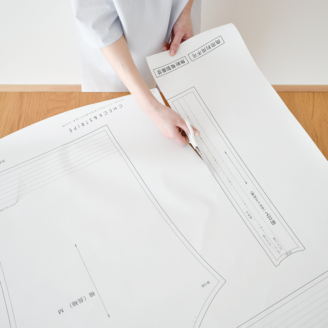 『CHECK&STRIPE Sewing Diary in Paris パリのソーイングダイアリー』(世界文化社)のワイドテーパードパンツがおつくりいただける型紙です。