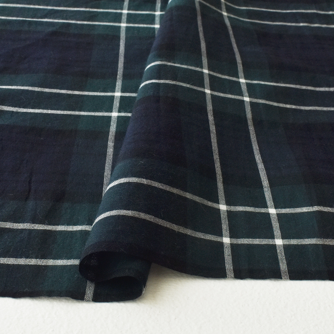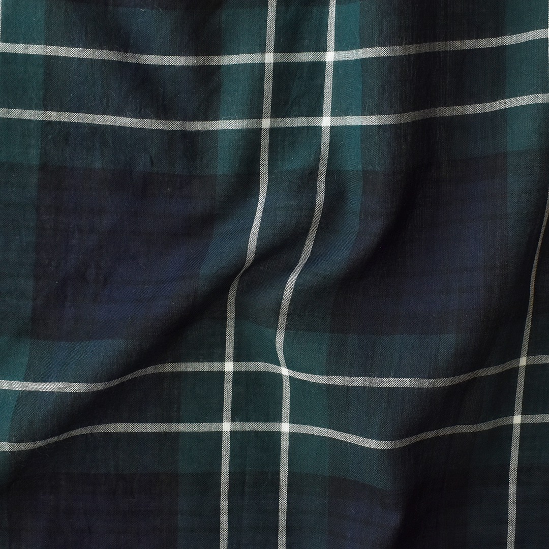 上品な光沢感のあるブラックウォッチ柄に織りあげました。