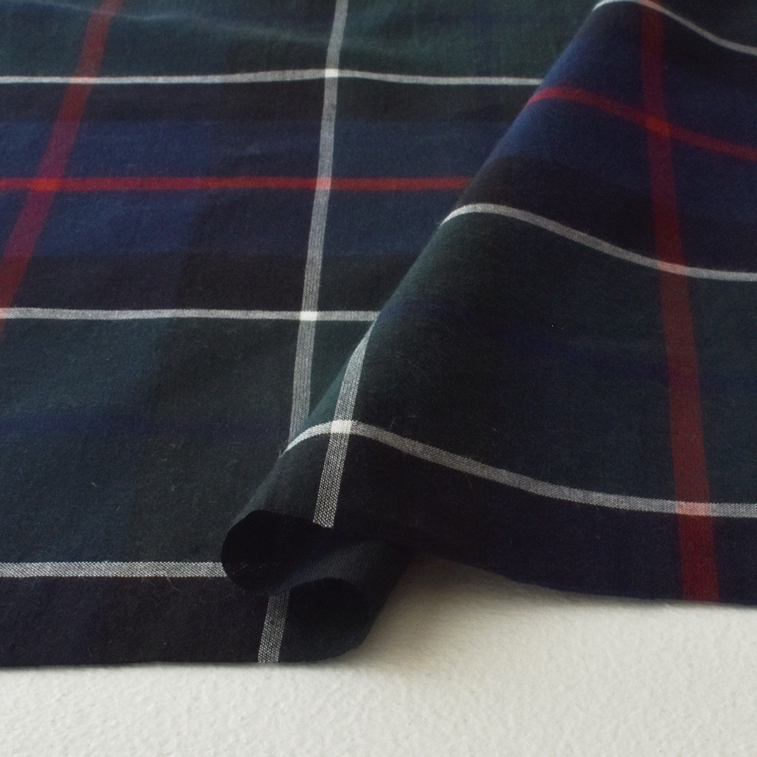 上品な光沢感のあるブラックウォッチ柄に織りあげました。