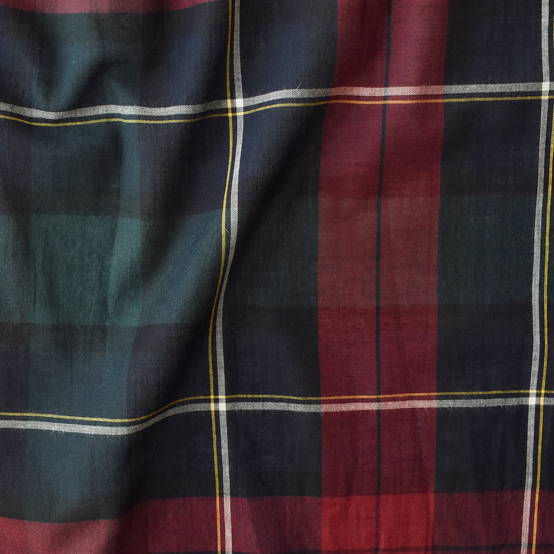上品な光沢感のあるブラックウォッチ柄に織りあげました。