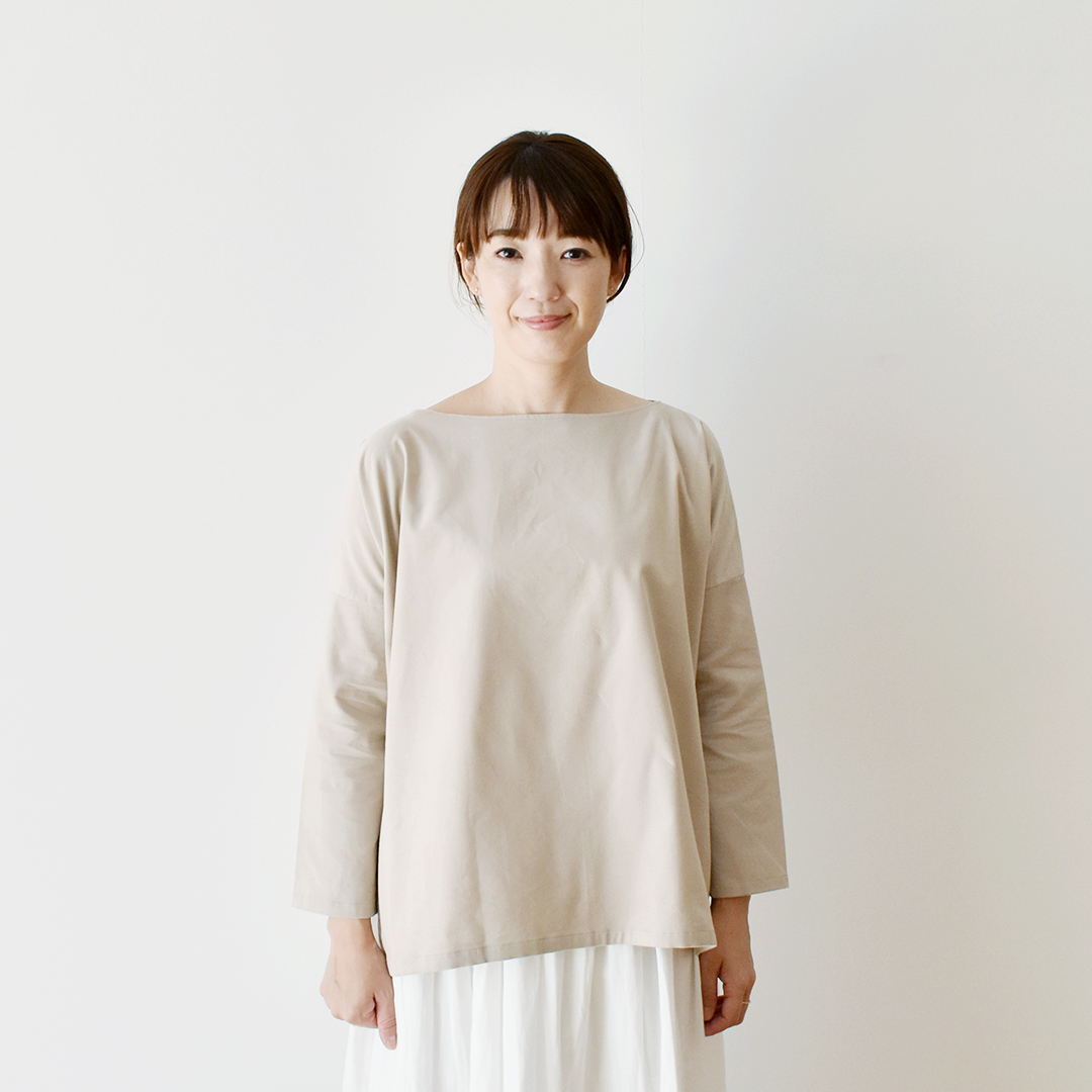 こちらの布をお買い上げのお客さまに、デイリープルオーバー(脇スリット入り長袖)のレシピをお付けします。(サンプル:ソイラテ) ※用尺:105cm幅×1.9m