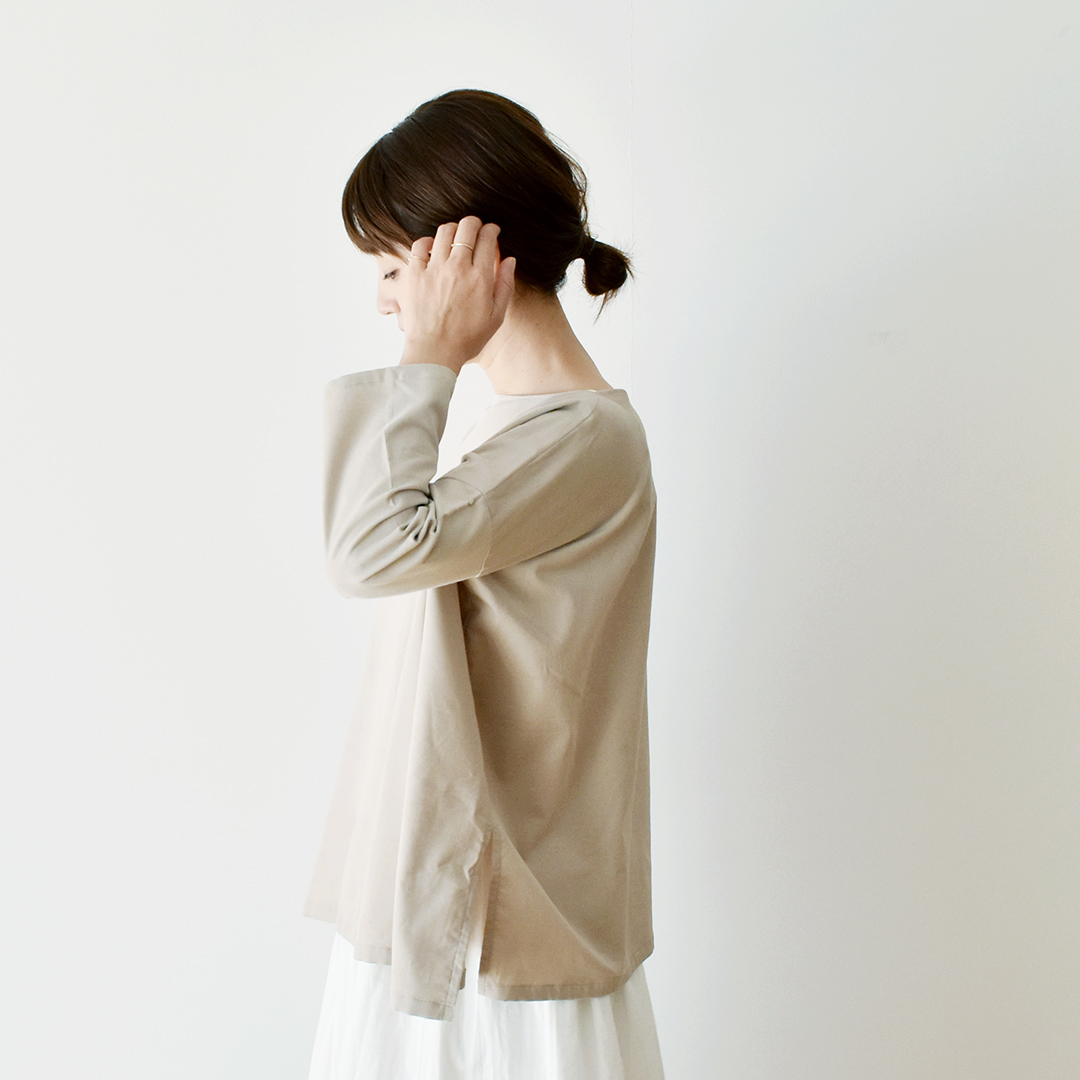 こちらの布をお買い上げのお客さまに、デイリープルオーバー(脇スリット入り長袖)のレシピをお付けします。(サンプル:ソイラテ) ※用尺:105cm幅×1.9m