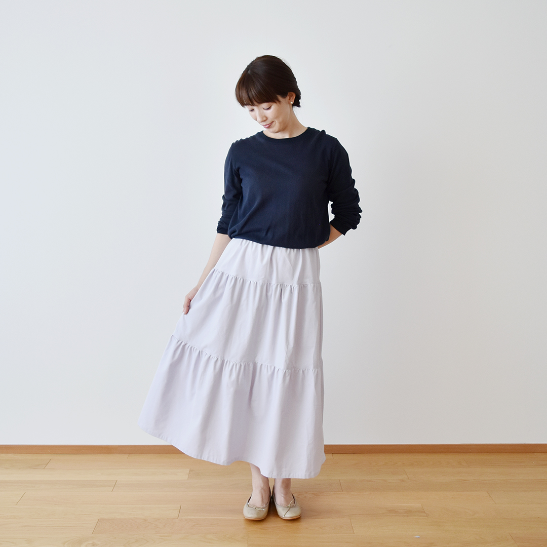 こちらの布をお買い上げのお客さまに、ティアードマキシスカート(ロング丈)のおまけレシピをお付けします。(サンプル:アイスラベンダー) ※用尺:105cm幅× 1.9m