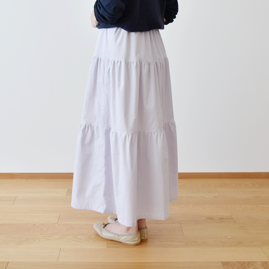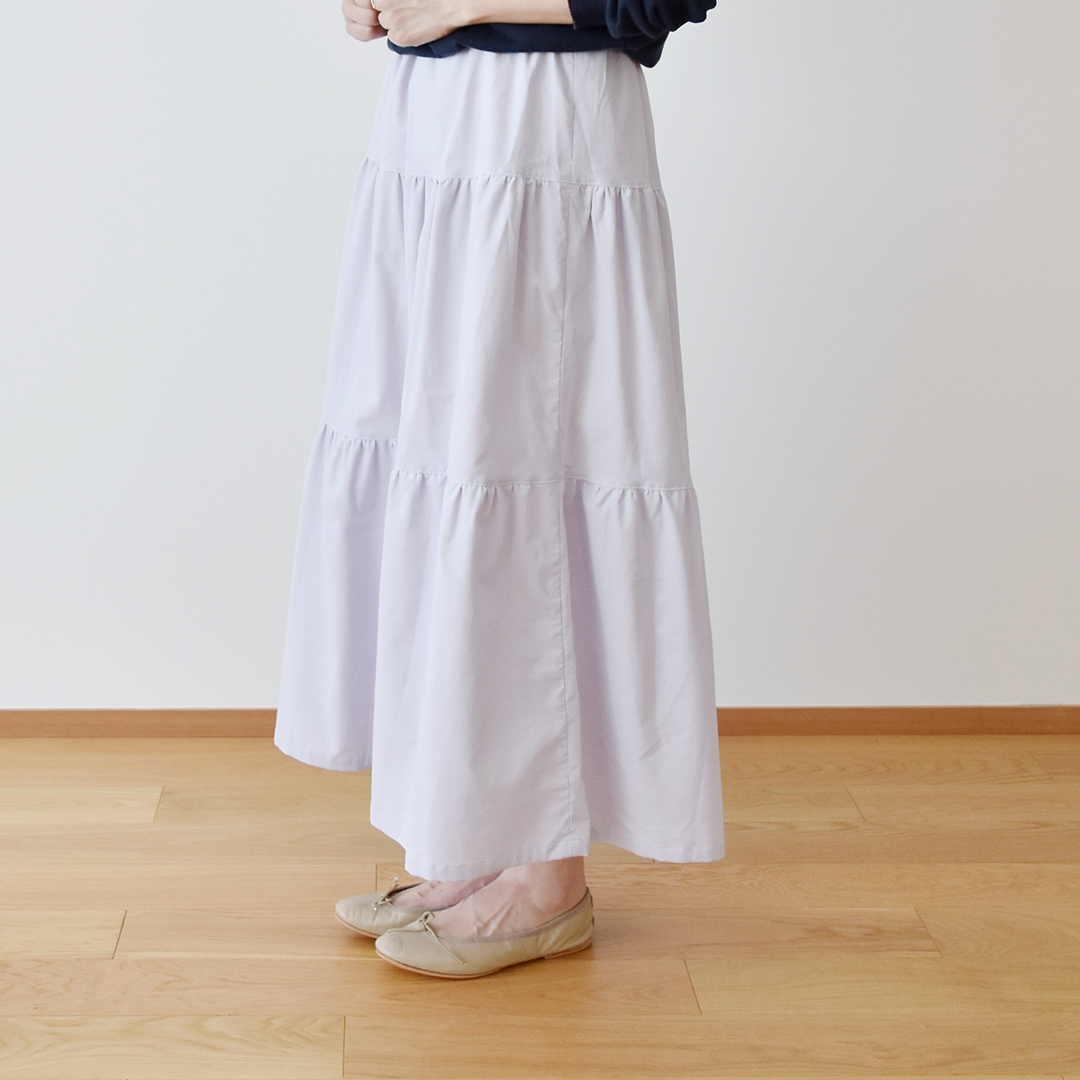 こちらの布をお買い上げのお客さまに、ティアードマキシスカート(ロング丈)のおまけレシピをお付けします。(サンプル:アイスラベンダー) ※用尺:105cm幅× 1.9m