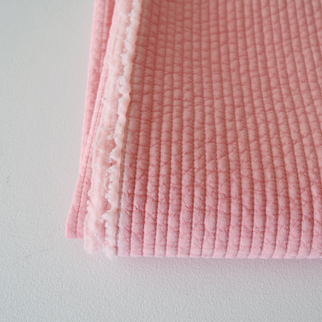 こちらの布をお買い上げのお客さまに、キルティングで作るマルシェバッグのレシピをお付けします。オンラインでは初めてご紹介するレシピです。(サンプル:ライトピンク) ※用尺:127cm幅×60cm
