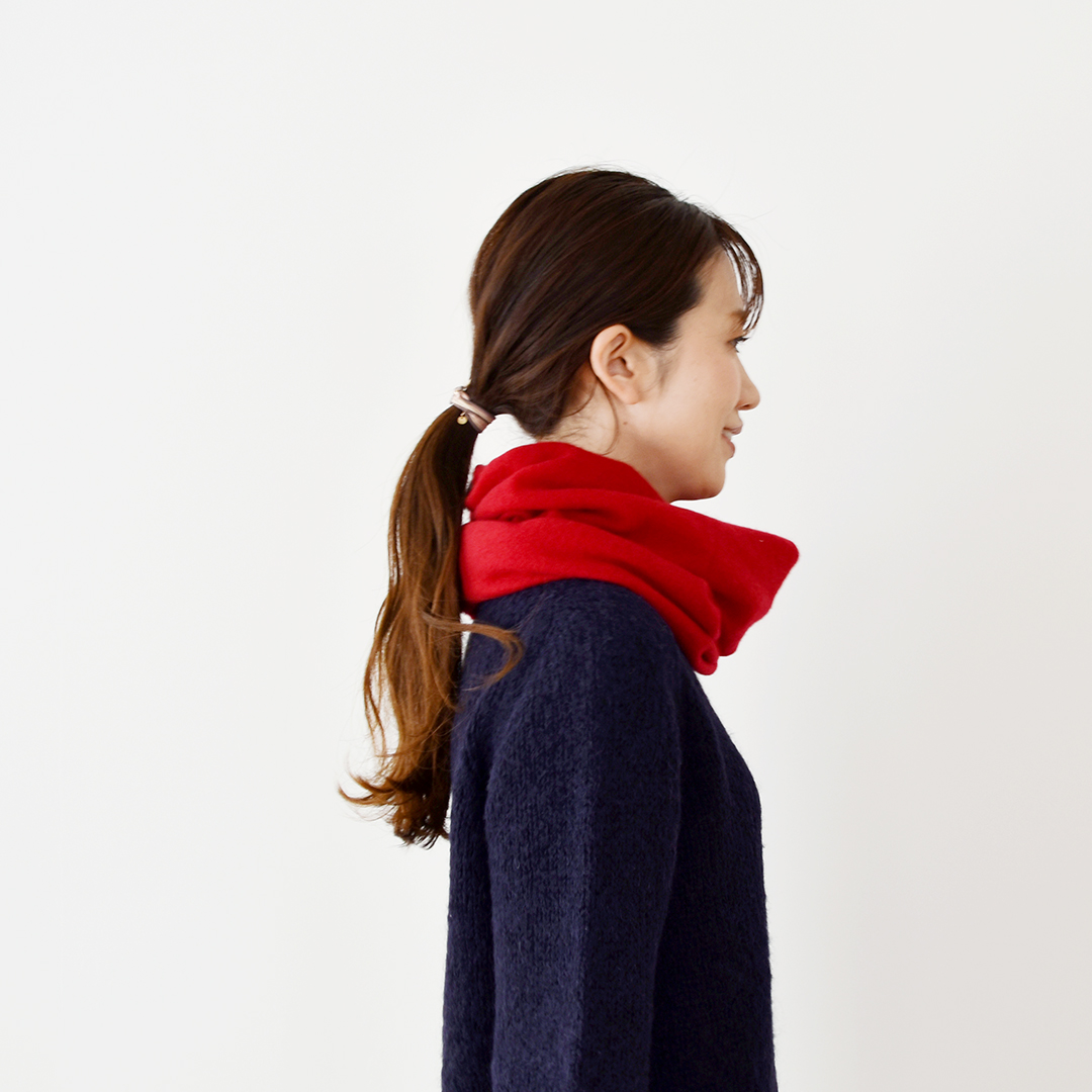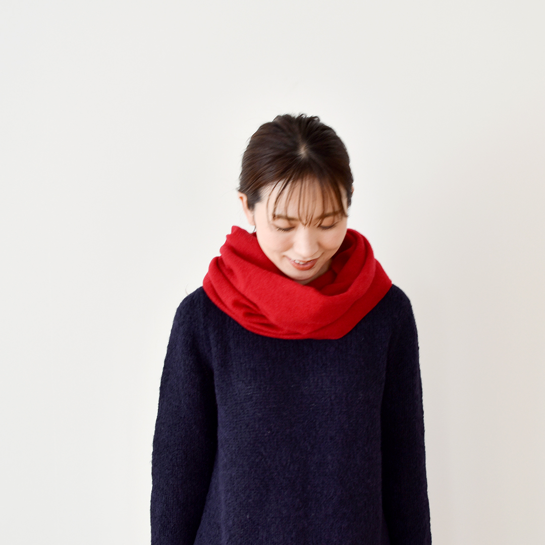 スヌードカットは、届いたままの輪の状態のままスッポリかぶってお使いいただいたり、切り開いてミニマフラーとされるなど2つの使い方があります。