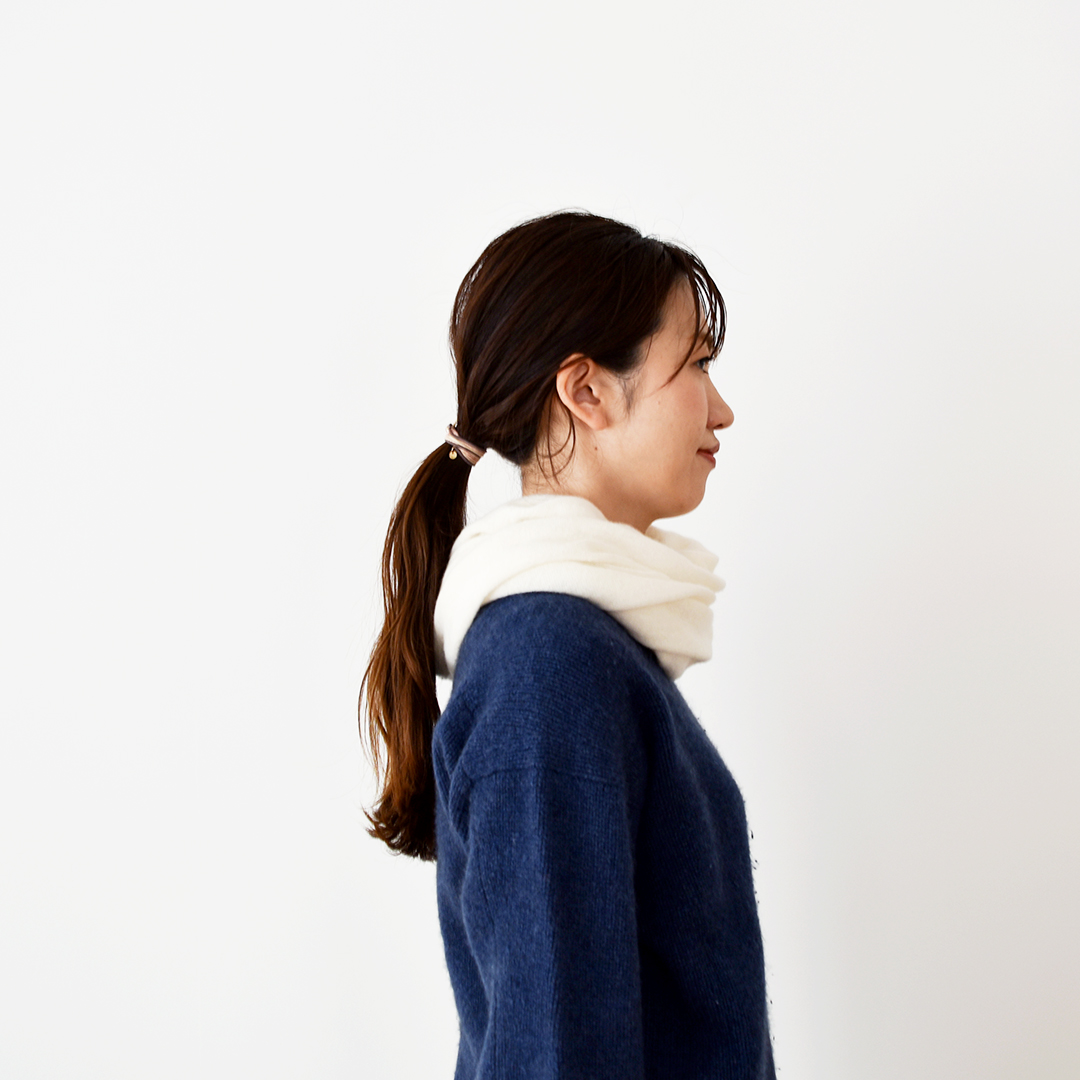 スヌードカットは、届いたままの輪の状態のままスッポリかぶってお使いいただいたり、切り開いてミニマフラーとされるなど2つの使い方があります。