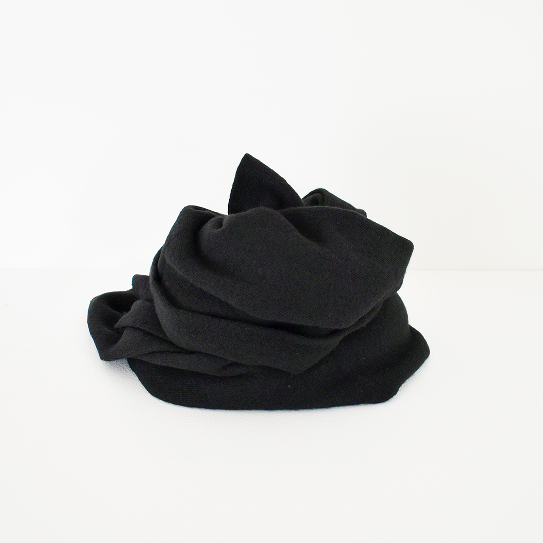 筒状のカシミヤニットです。「フォイユ」とはフランス語で葉っぱのこと。いろんな色の筒状のカシミヤが並んだところから、落ち葉がくるっとまるまって落ちている様子をイメージしました。