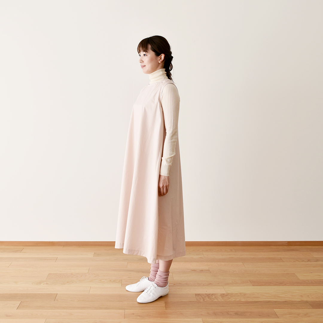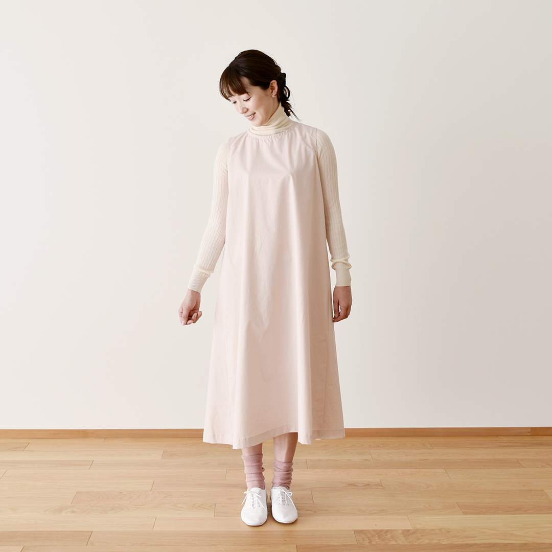 こちらの布をお買い上げのお客さまに、後ろフレアのワンピースのレシピをお付けします。(サンプル:グレイッシュピンク) ※用尺110cm幅×3.6m