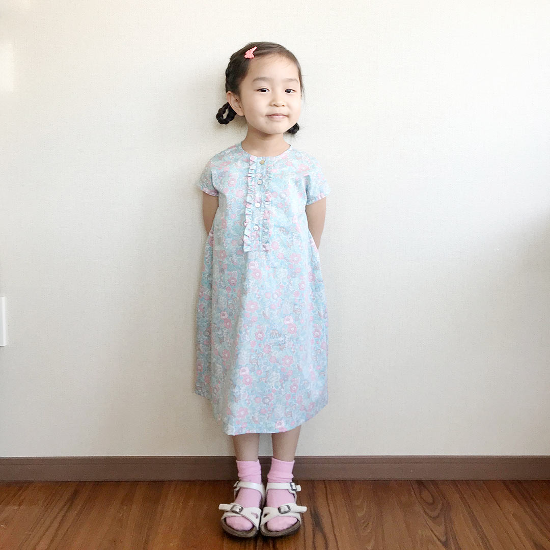 ◎J20B(ライトブルーグリーン地にピンク・グレー系):『CHECK&STRIPE SEW HAPPY』(世界文化社) フリル使いのワンピース 子ども