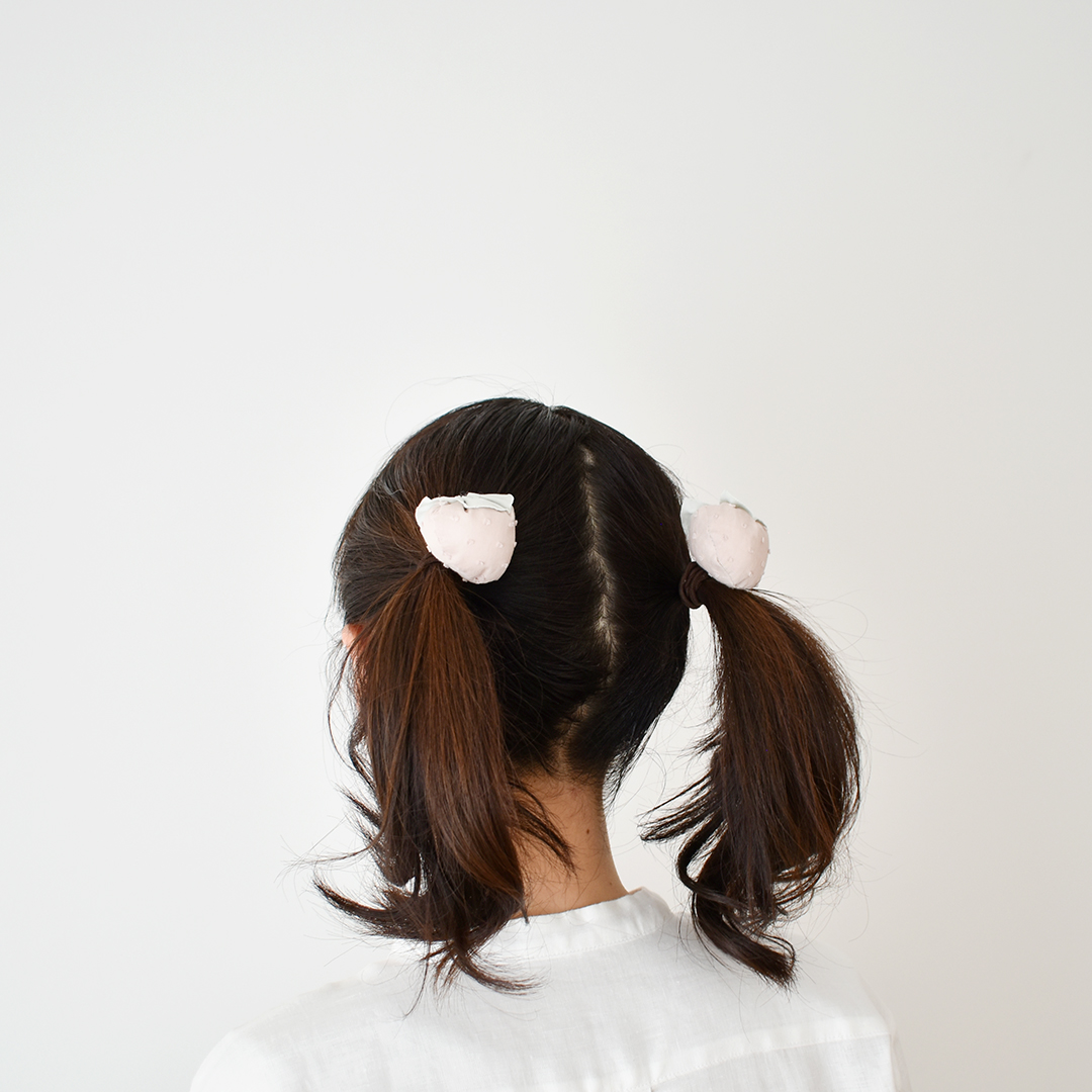 いちごのヘアゴムが4つ作れるキットです。手縫いでもお作りいただけます。存在感のある大きめないちごが、コロンとしてとても可愛らしいです。