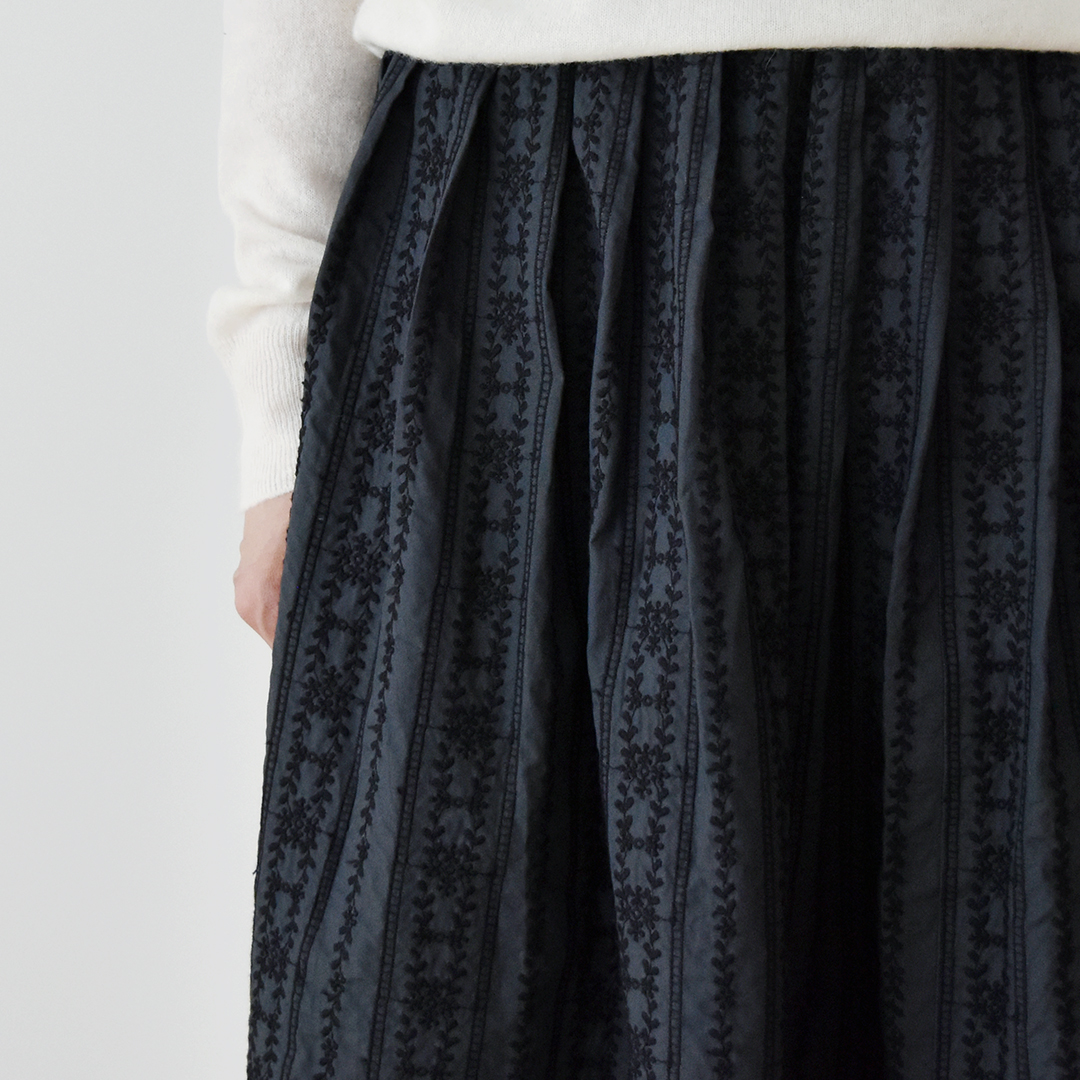 こちらの布をお買い上げのお客さまに、タックのロングスカートのレシピをお付けいたします。(サンプル:木いちごに黒) ※用尺105㎝幅×1.7m