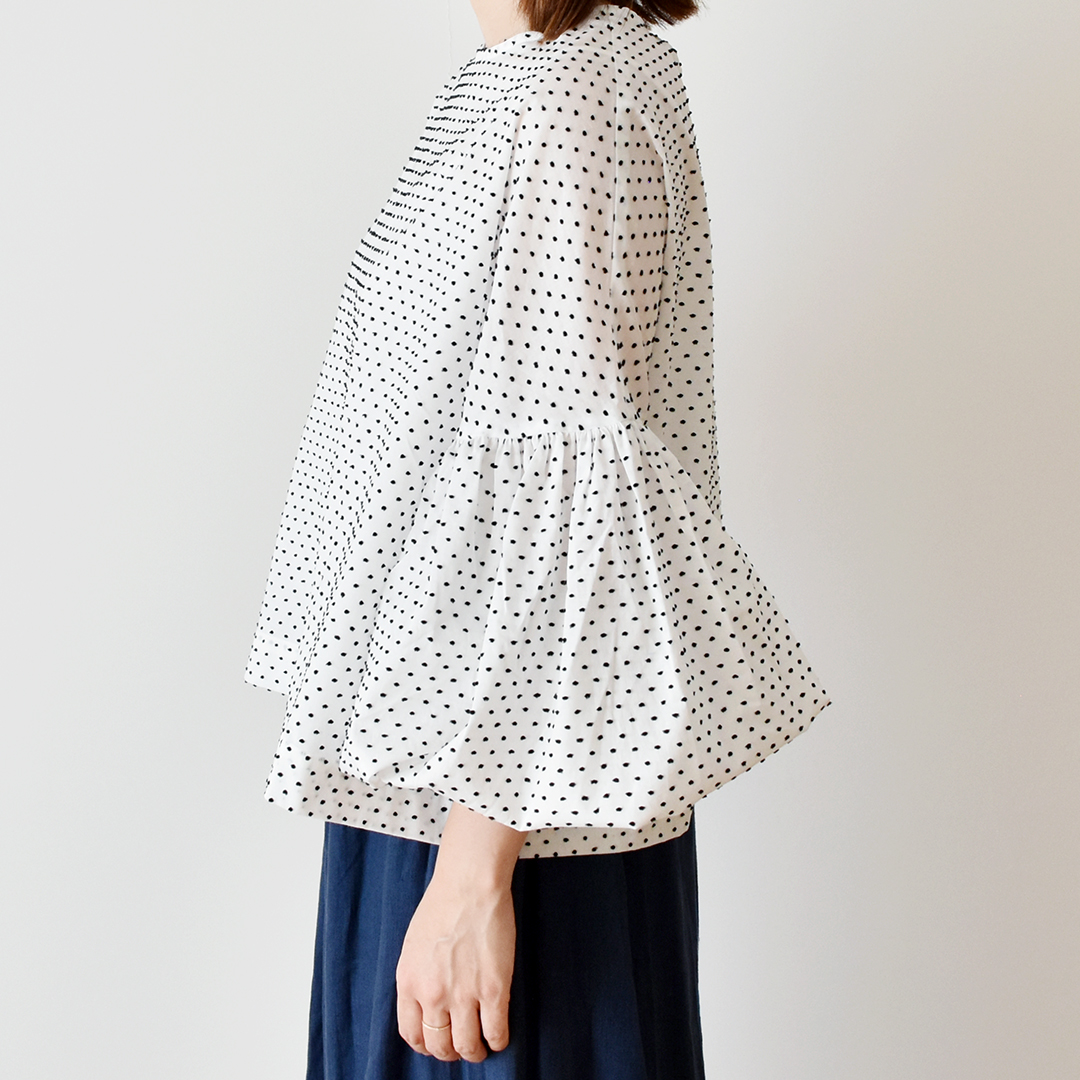 透け感のある布にカットドビーで表現された水玉がかわいい布です。