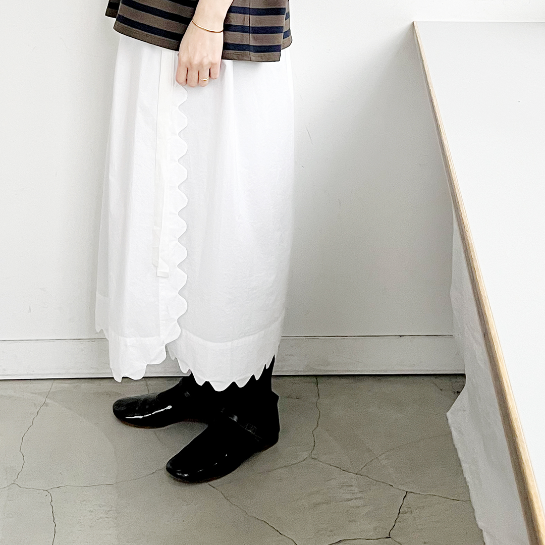 ホワイト:『CHECK&STRIPE my favorite 私の好きな服』(主婦と生活社) スカラップの巻きスカート