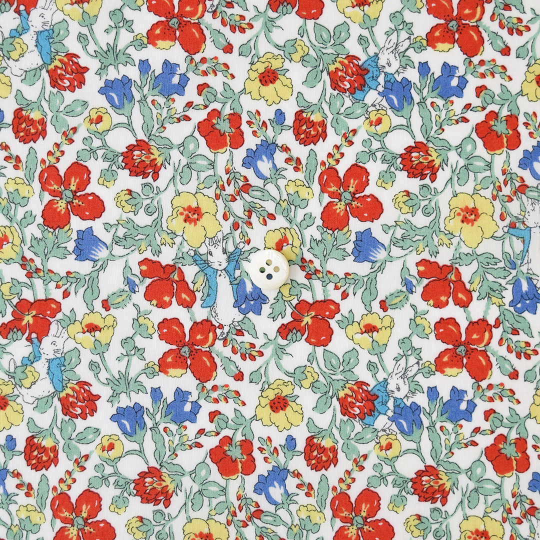 野生の草原に咲く花々に隠れているキャラクターをよーく見てください。そう!ピーターラビット™です。イングリッシュガーデンに咲くポピーやブルーベルを楽しく表現した1930年代の象徴的なこのデザインは、30年以上にわたりクラシック・コレクションに加入していました。