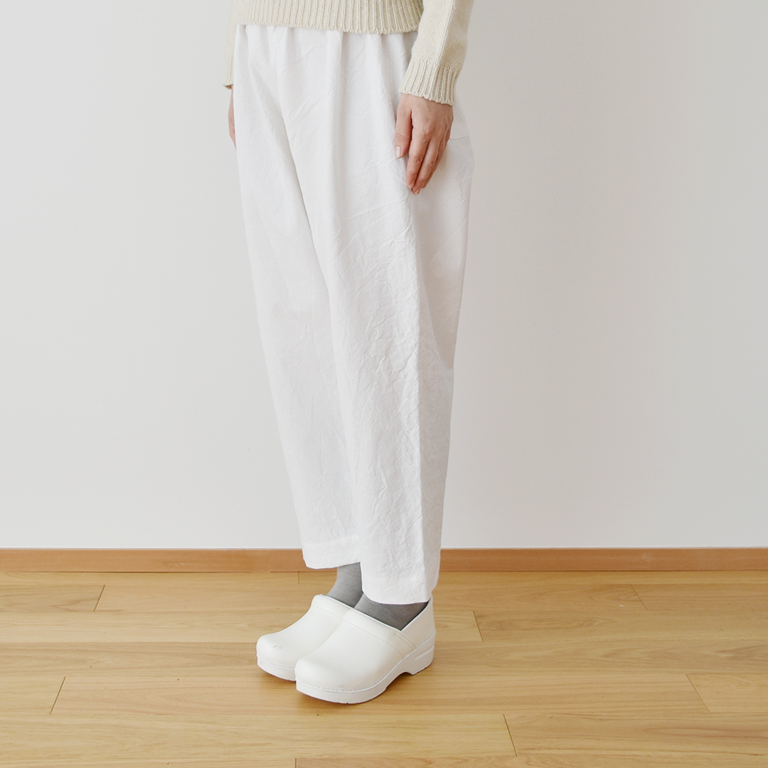 こちらの布をお買い上げのお客さまに、かんたんテーパードパンツのレシピをお付けいたします。(サンプル:オフホワイト) ※用尺:105cm幅×2.2m