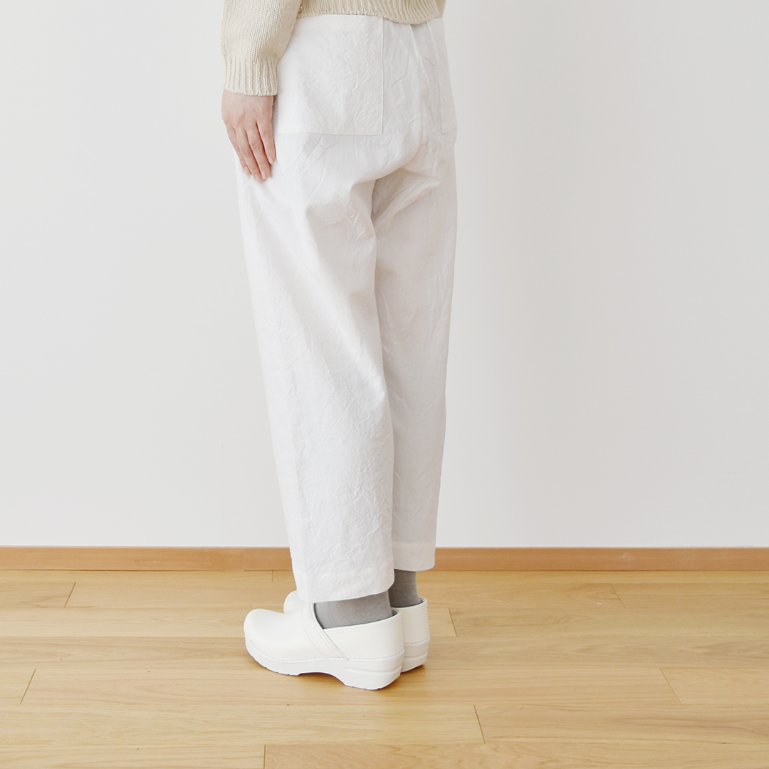 こちらの布をお買い上げのお客さまに、かんたんテーパードパンツのレシピをお付けいたします。(サンプル:オフホワイト) ※用尺:105cm幅×2.2m