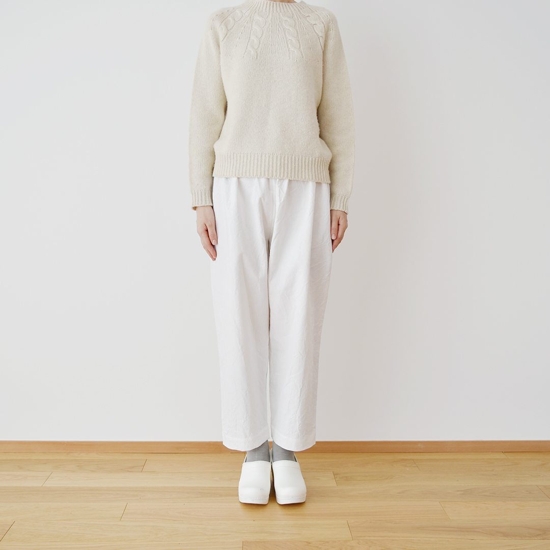 こちらの布をお買い上げのお客さまに、かんたんテーパードパンツのレシピをお付けいたします。(サンプル:オフホワイト) ※用尺:105cm幅×2.2m